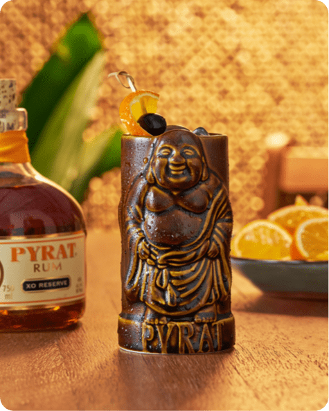 The Hoti is the zen protector and patron saint of bartenders. He evokes happiness, prosperity and good cheer to all. His story – and the story of rum – begins in Asia, where sugarcane was first distilled. Each bottle of Pyrat is imparted with his spirit and adorned with a collectible medallion in his image to honor the ancient origins of rum.